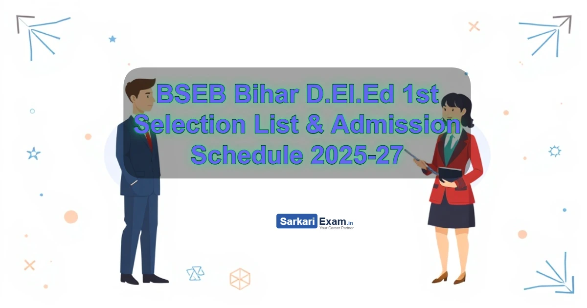 The Bihar School Examination Board (BSEB) has released the 1st Selection List for admission to the 2-year D.El.Ed course (2025-2027 session). Qualified candidates who participated in counselling must complete their admission and 'Slide Up' process by December 16, 2025.