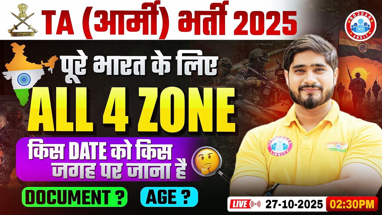 Candidates for Soldier/Tradesmen posts must report directly to the designated Rally Centre (Unit location) on the specified date (e.g., 2025-11-28 for Delhi/Haryana Zone) with all required original documents.